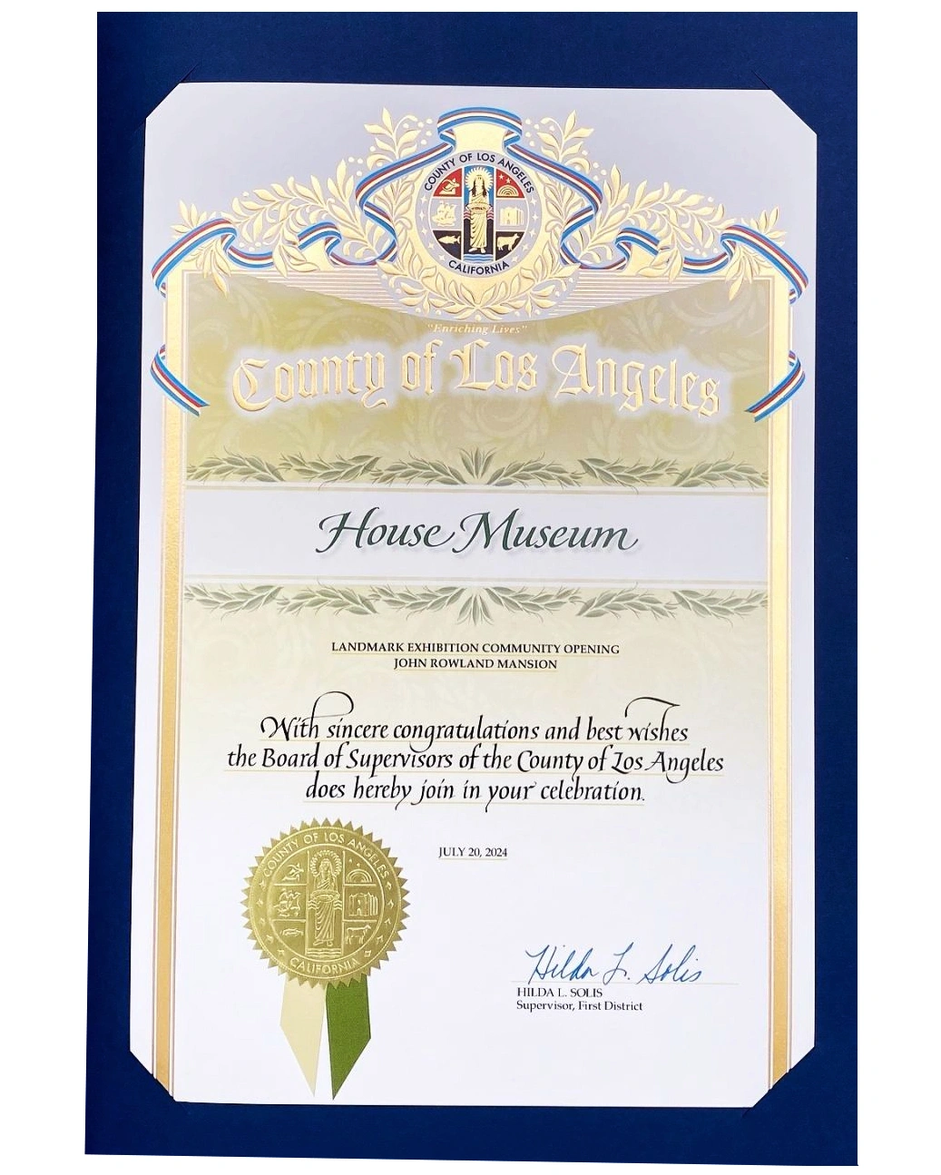 Awarded by Los Angeles County Supervisor, Hilda L. Solis, District 1