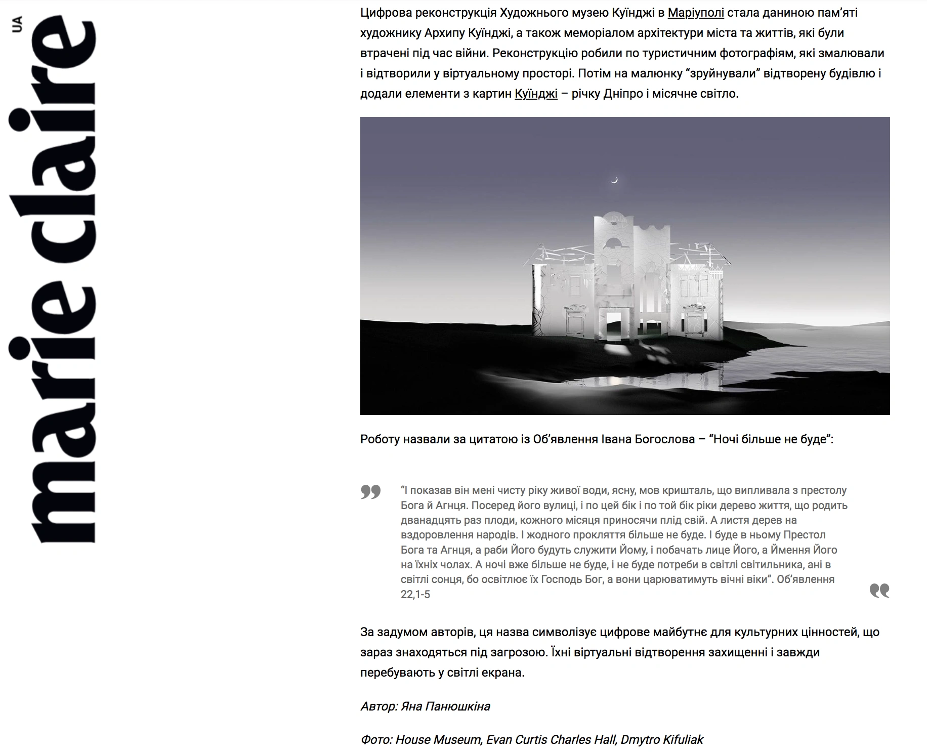 The digital reconstruction of the Kuindzhi Art Museum in Mariupol has become a tribute to the artist of Archip Kuindzhi, as well as a memorial of the city's architecture and lives that were lost during the war.