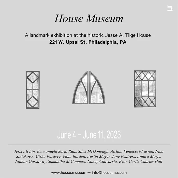 House Museum organizes a “landmark exhibition” in Philadelphia’s historic residence, the Jesse A. Tilge House, located at 221 W. Upsal Street in Mount Airy, PA. Twelve artists, working across varying disciplines, have been invited to respond to architect George T. Pearson’s 1887 Queen Anne style home and the legacy of past owners, with a site-specific artwork. The exhibition explores how an artistic practice can be an alternative form of historic preservation, by surfacing complexities embedded within the physical and conceptual history of a place. The immersive installation will feature sculptures, paintings, photography, and performance—all seamlessly integrated into the 19th century framework that qualified the site for landmark designation by the Philadelphia Historical Commission in 2022.